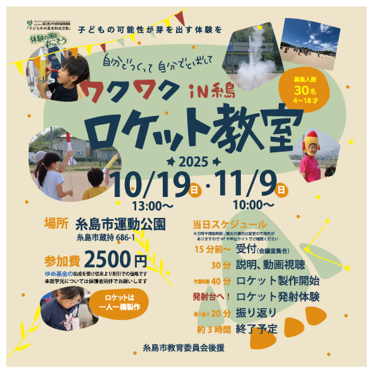 【子どもゆめ基金助成活動】からの助成を受けたロケット教室開催します! 開催概要詳細 |